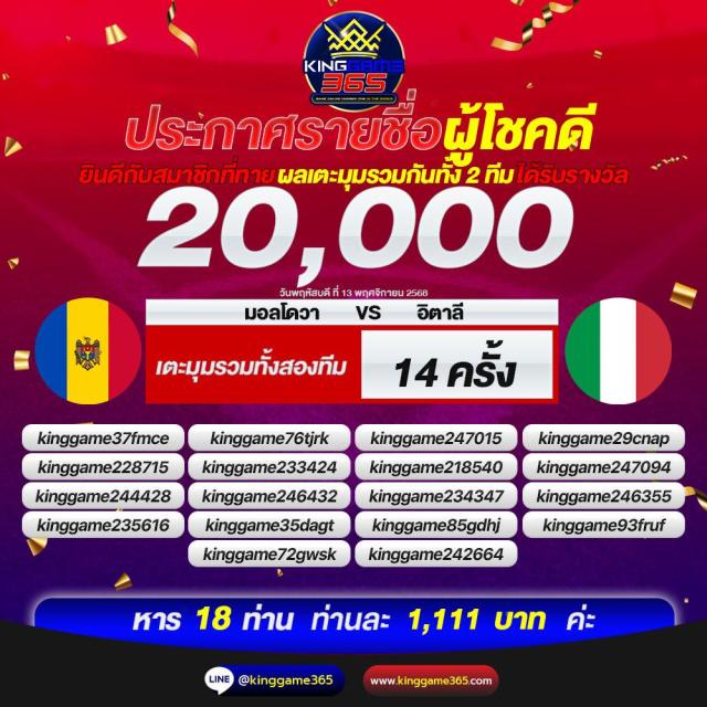 ถ้าพูดถึงเว็บพนันออนไลน์ เว็บตรง ไม่ผ่านเอเย่นต์ ใคร ๆ ก็ต้องพูดเป็นเสียงเดียวกัน ว่าต้อง Kinggame365 เท่านั้น เพราะเป็นเว็บตรงแท้แน่นอน มีใบการันตีจากอเมริกา มีแอดมินคอยดูแลตลอด 24 ชั่วโมง ฝากถอนออโต้ รวดเร็วทันใจภายใน 2 วินาที ฝากถอนได้ไม่จำกัดจำนวนครั้ง และ สำคัญยิ่งกว่านั้นคือ King game 365 ยังถอนได้มากถึง 60 ล้าน ต่อวัน และมียูสเซอร์เข้าเล่นมากกว่า 6 ล้านคน ต่อวัน พร้อมทั้งมีคาสิโนและค่ายเกมออนไลน์มากมายที่คอยไว้บริการสำหรับผู้เล่นที่ชอบเดิมพัน ไม่ว่าจะเป็นคาสิโนค่ายดัง เช่น AE Casino, SA Gaming, Dream Gaming, PRETTY Gaming, EBET, ALLBET Casino, betgames.tv, D88 Green-Dragon, Pragmatic Play หรือ XTREME Gaming หรือ ค่ายสล็อตกว่า 44 ค่ายเกม เช่น PG Slot, Slot XO, Pragmatic Play, Kingmaker และ เกมสล็อตมากกว่า 50,000 ที่ไว้ให้ผู้เล่นได้เลือกเล่นอย่างมากมาย Kinggame365 เว็บพนันออนไลน์ เว็บตรง ไม่ผ่านเอเย่นต์ 100% เล่นง่าย จ่าย จริง ตัวจริงเรื่องคาสิโน จะต้อง Kinggame365.com เท่านั้น