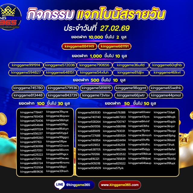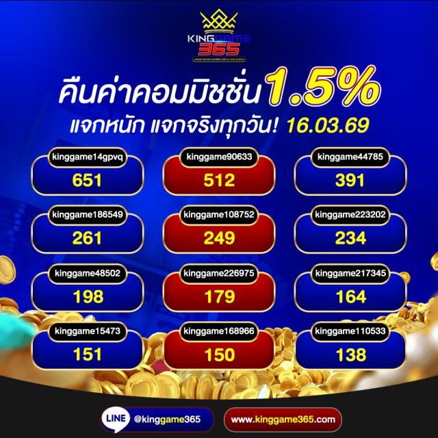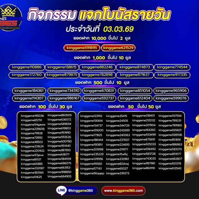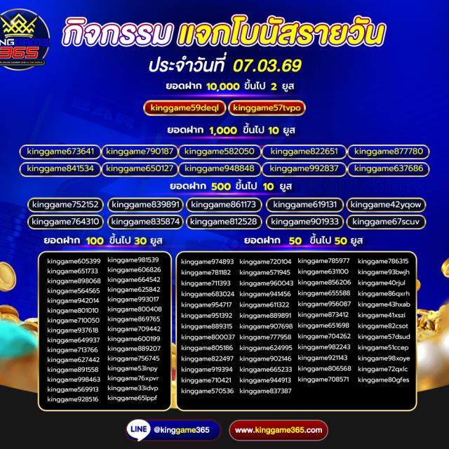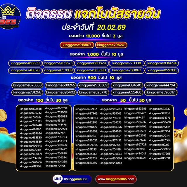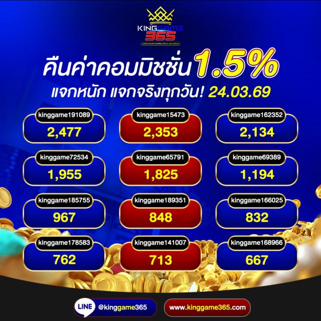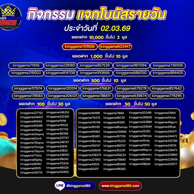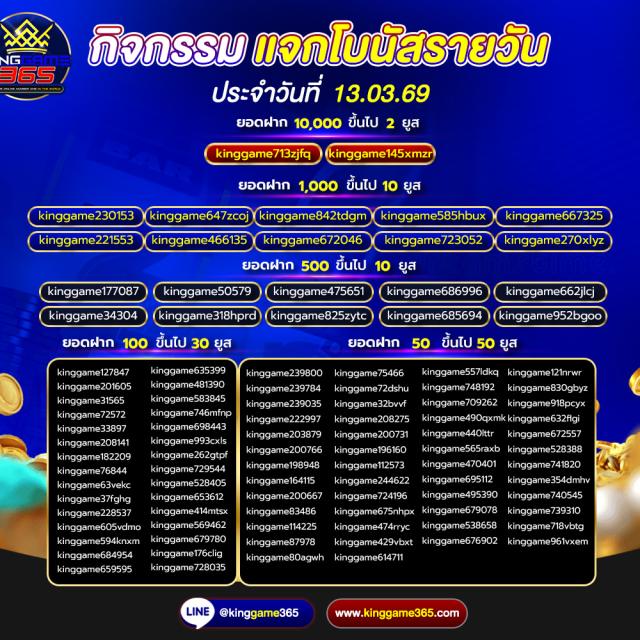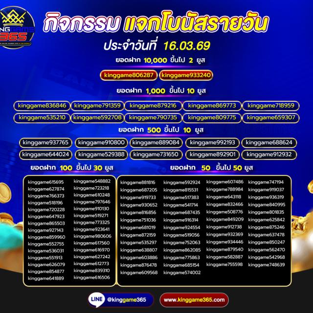 เว็บตรง ที่มั่นคง ปลอดภัย ครบจบในที่เดียว เว็บ kinggame365.com มีให้บริการทั้ง คาสิโน และ สล็อต มากมายที่ทำให้ผู้เล่นได้เข้าถึงอารมณ์คาสิโนอย่างแท้จริง เสมือนเข้าไปนั่งเดิมพันในคาสิโนที่ยิ่งใหญ่ ที่มีน้อง ๆ คอยบริการอย่างใกล้ชิดเลยทีเดียว เพราะ king game365 ใส่ใจทุกขั้นตอนตั้งแต่ ผุ้เล่นเลือกที่จะสมัครกับทางเว็บของ kinggame 365 เว็บพนันออนไลน์ ไม่ผ่านเอเย่นต์ ถ้าผู้เล่นสนใจสมัครสมาชิกเองก็สามารถกดเข้าไปได้ที่หน้าเว็บของ Kinggame365.com ได้ทันที หรือจะให้น้อง ๆ แอดมินบริการสมัครสมาชิกให้ก็ได้เช่นเดียวกัน ง่าย ๆ เพียงไม่กี่ขั้นตอนเท่านั้น ผู้เล่นก็สามารถเข้าเดิมพันได้ตามคาสิโน ที่ผู้เล่นเป็นคนเลือก หรือเกมสล็อตต่าง ๆ ที่ผู้เล่นสนใจได้ด้วยตนเอง และระบบการฝากถอนเป็นแบบ ออโต้ ภายใน 2 วินาที และยังไม่มีขั้นต่ำในการฝากถอน อีกต่างหาก ไม่ว่าผู้เล่นจะมีทุนมากหรือน้อย Kinggame 365 เว็บตรง ก็สามารถให้ผู้เล่นเป็นเศรษฐี ได้เหมือนกัน เพียงแค่ผู้เล่น เลือกเกมและเข้าเดิมพัน ได้รับอัตราการชนะมากกว่า 90 เปอร์เซ็นต์