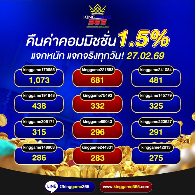 ถ้าพูดถึงเว็บพนันออนไลน์ เว็บตรง ไม่ผ่านเอเย่นต์ ใคร ๆ ก็ต้องพูดเป็นเสียงเดียวกัน ว่าต้อง Kinggame365 เท่านั้น เพราะเป็นเว็บตรงแท้แน่นอน มีใบการันตีจากอเมริกา มีแอดมินคอยดูแลตลอด 24 ชั่วโมง ฝากถอนออโต้ รวดเร็วทันใจภายใน 2 วินาที ฝากถอนได้ไม่จำกัดจำนวนครั้ง และ สำคัญยิ่งกว่านั้นคือ King game 365 ยังถอนได้มากถึง 60 ล้าน ต่อวัน และมียูสเซอร์เข้าเล่นมากกว่า 6 ล้านคน ต่อวัน พร้อมทั้งมีคาสิโนและค่ายเกมออนไลน์มากมายที่คอยไว้บริการสำหรับผู้เล่นที่ชอบเดิมพัน ไม่ว่าจะเป็นคาสิโนค่ายดัง เช่น AE Casino, SA Gaming, Dream Gaming, PRETTY Gaming, EBET, ALLBET Casino, betgames.tv, D88 Green-Dragon, Pragmatic Play หรือ XTREME Gaming หรือ ค่ายสล็อตกว่า 44 ค่ายเกม เช่น PG Slot, Slot XO, Pragmatic Play, Kingmaker และ เกมสล็อตมากกว่า 50,000 ที่ไว้ให้ผู้เล่นได้เลือกเล่นอย่างมากมาย Kinggame365 เว็บพนันออนไลน์ เว็บตรง ไม่ผ่านเอเย่นต์ 100% เล่นง่าย จ่าย จริง ตัวจริงเรื่องคาสิโน จะต้อง Kinggame365.com เท่านั้น